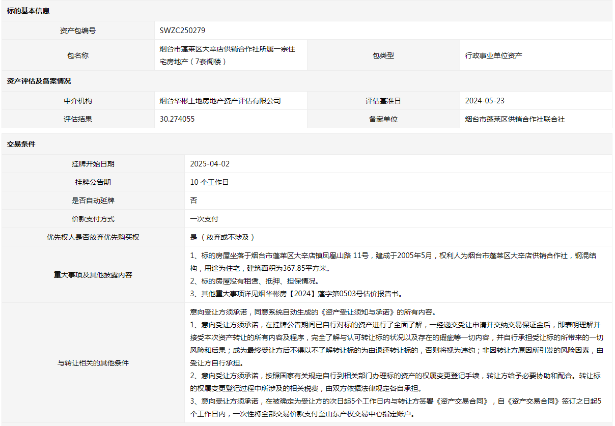 煙臺(tái)市蓬萊區(qū)大辛店供銷合作社所屬一宗住宅房地產(chǎn)(7套閣樓)