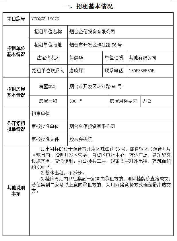 煙臺(tái)市開發(fā)區(qū)珠江路56號辦公樓第三層約600㎡租賃