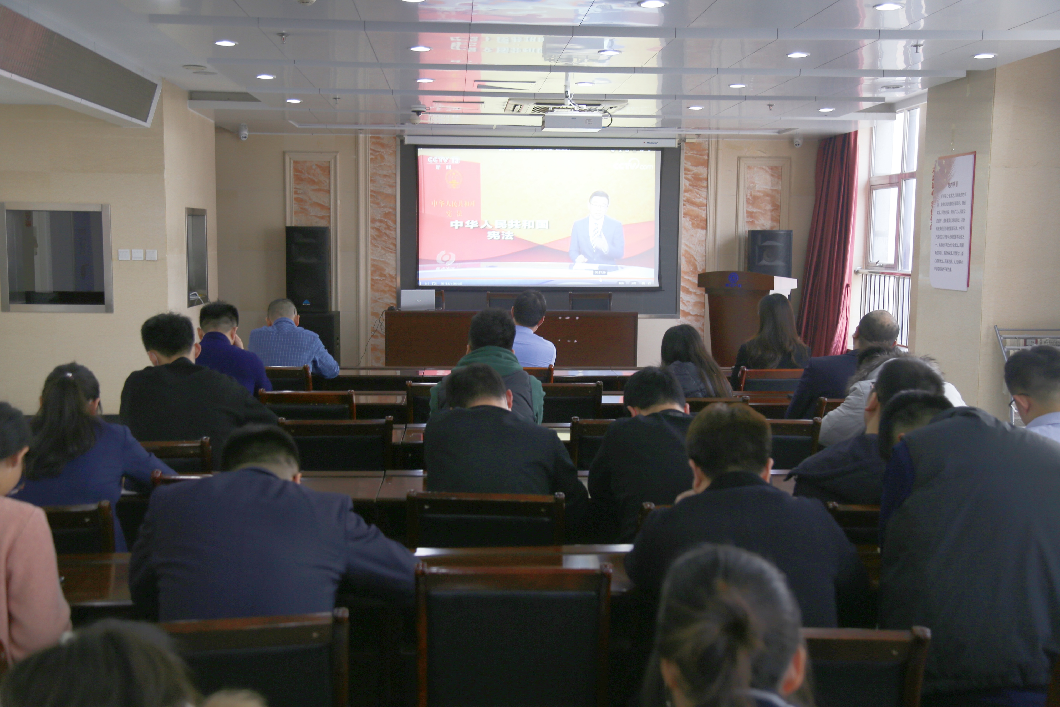 活動中,視頻教學方式,向全體職工干部宣講與生活息息相關(guān)的法律法規(guī)、糾紛化解等相關(guān)憲法知識,積極引導職工遵法、學法、懂法、用法,遇事找法、解決問題靠法。